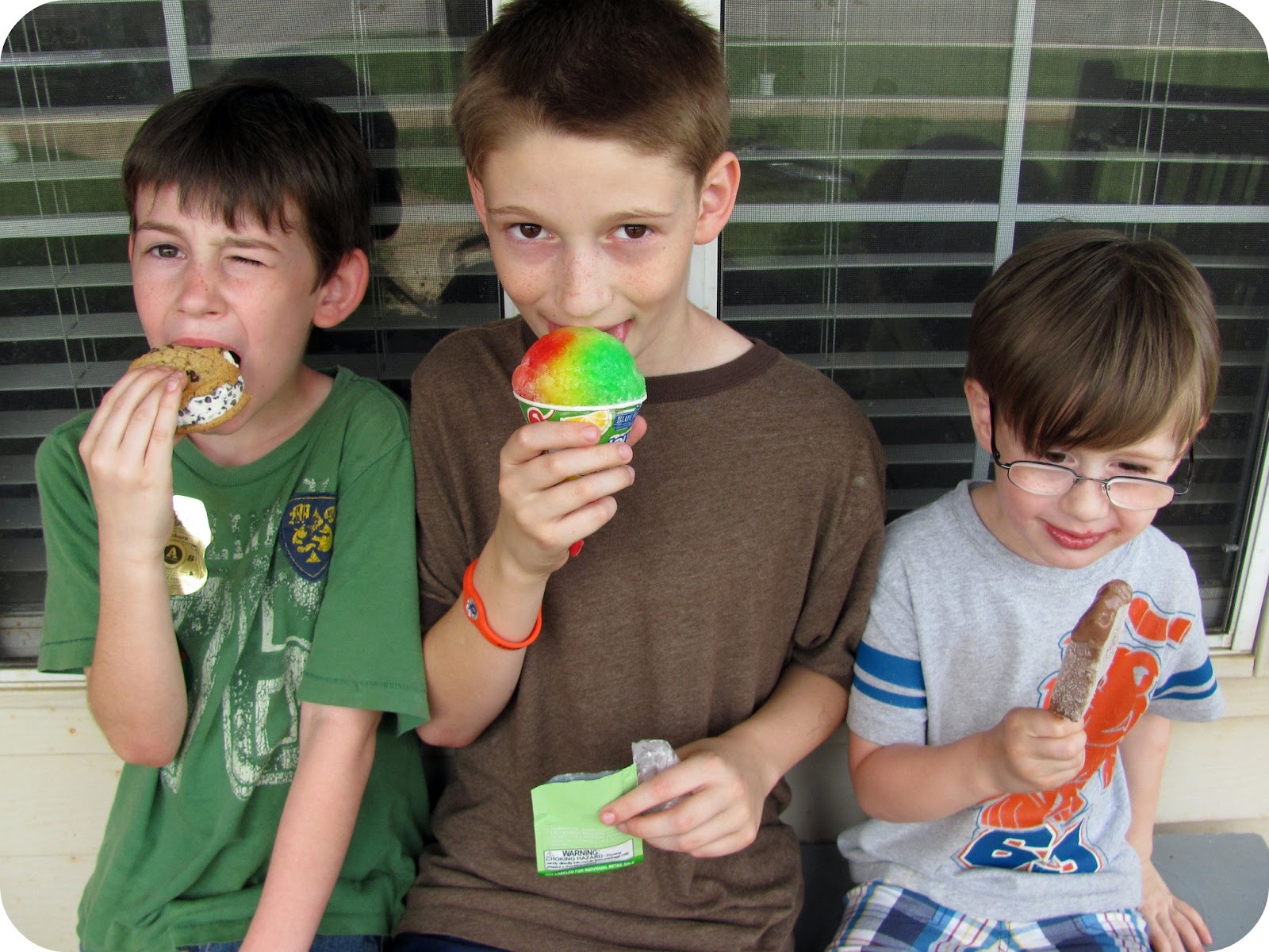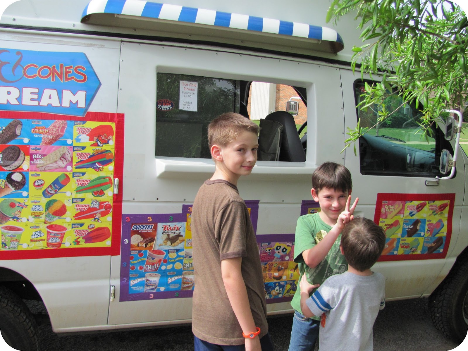 The ice cream truck made a visit to our neighborhood this afternoon. My kids have never gotten ice cream from an ice cream truck before. On a whim I decided that my kids needed this childhood experience. I grabbed my wallet and we went out to wait for him to come make his way around the cul de sac and come back by our house.