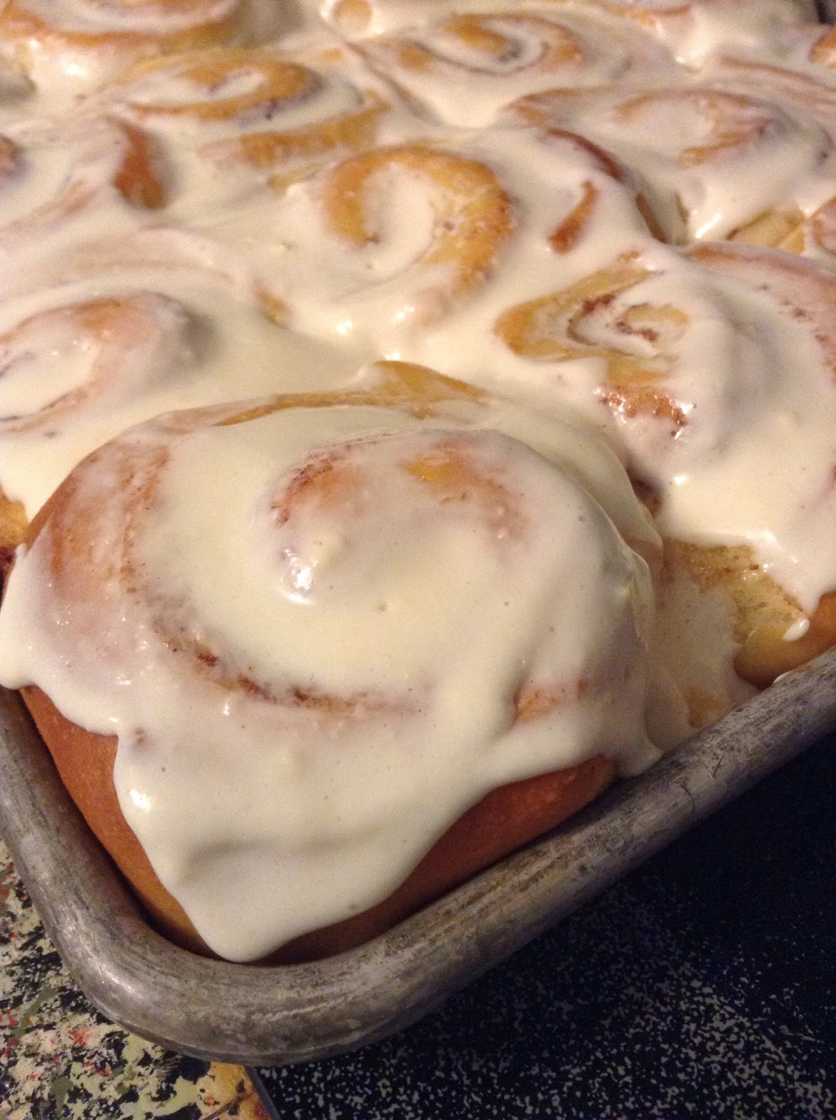My first batch had thicker frosting, the second batch I thinned it out a bit more. Both were equally delicious, the thinner icing just kind of gets in the nooks and crannies a little bit better, in my opinion