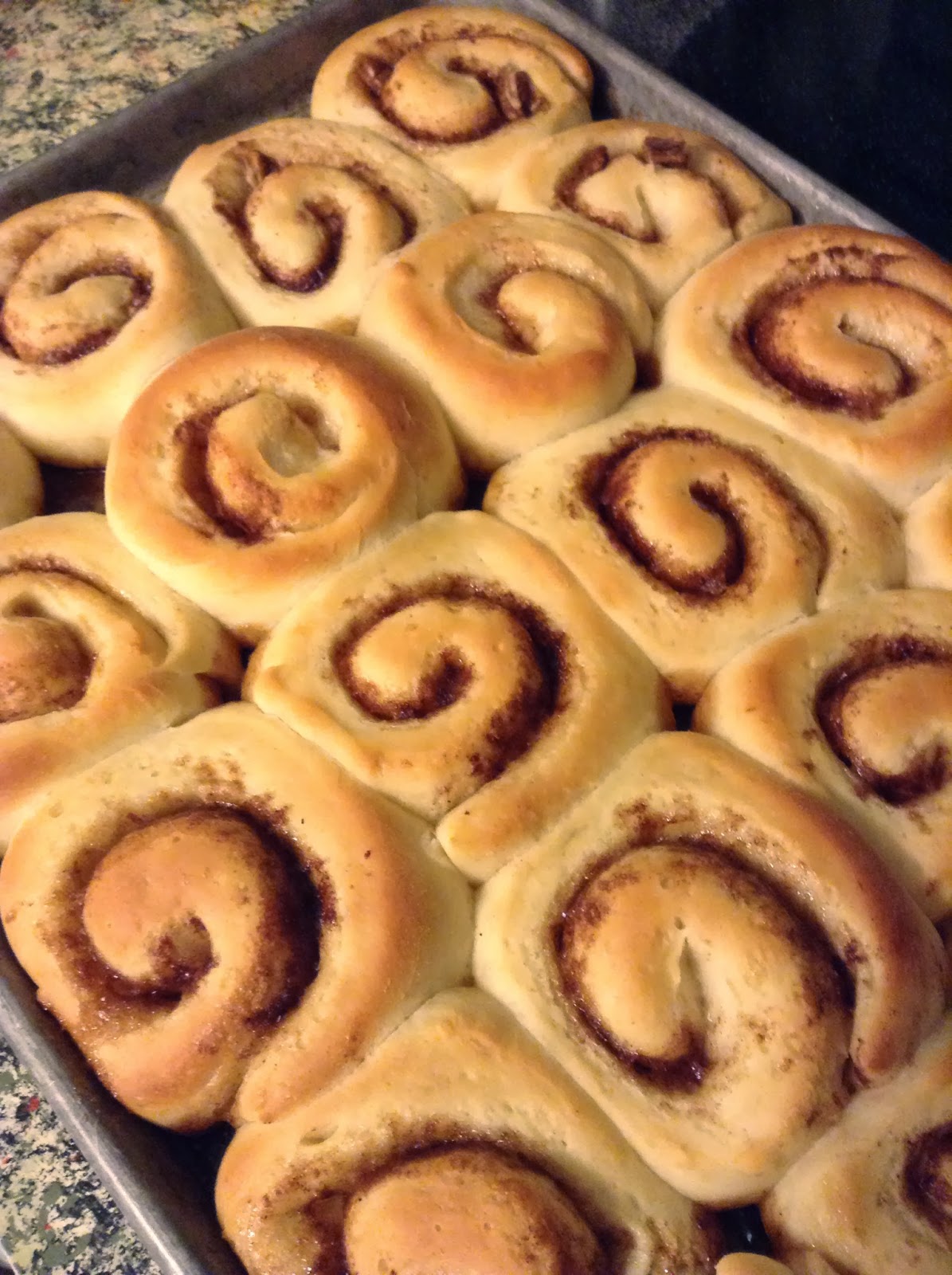 I had a few requests for the recipe so I'm posting it here. These are the cinnamon rolls my mom made when I was growing up and I have lots of happy memories of Christmas mornings and other special occasions made even more special by the presence of these cinnamon rolls. They are melt-in-your-mouth delicious. The recipe makes two dozen good sized rolls and my family of six devoured them faster than you can say "the diet starts tomorrow".
