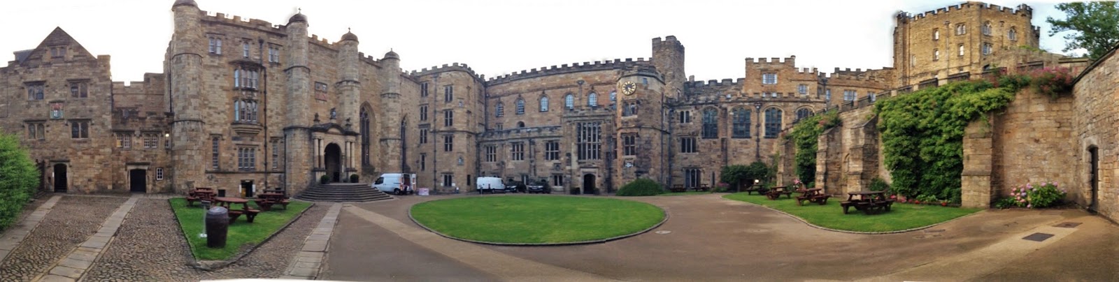 After the service, the rain had stopped. We went and checked into our room for the night in Durham Castle (*squeal*) and dragged our suitcases all the way up the stairs to our rooms. There are no elevators in castles so this was hard work. We each had our own room for the evening so we dropped Mom off at her room first, my room was a couple more flights of stairs up and Anne's room was at the top. The water closet for each floor was shared.