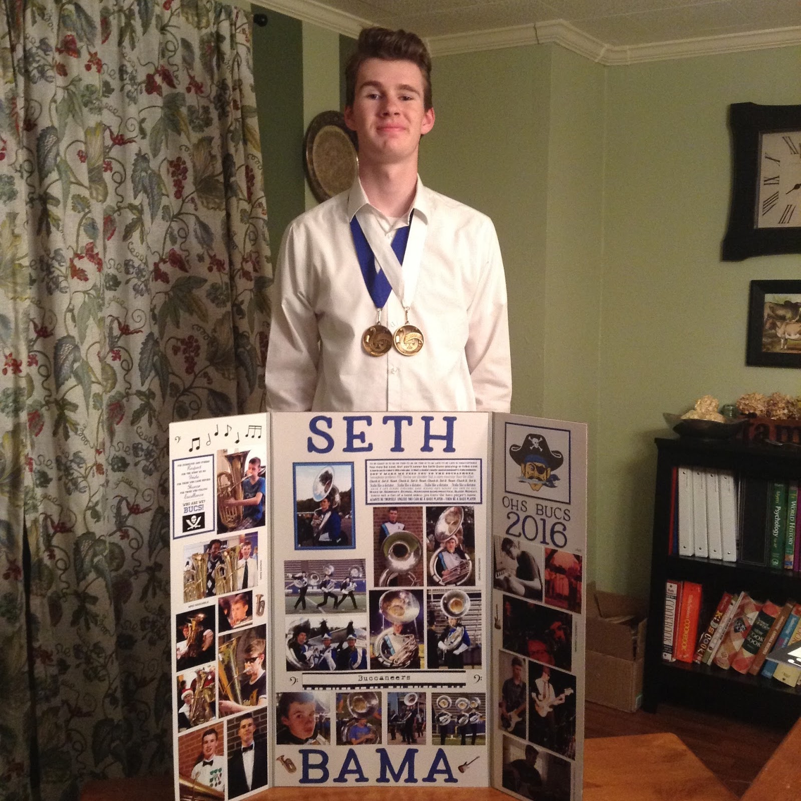 | Here is Seth with the much stressed over poster I made for the banquet. Per tradition, the parents of the seniors all make posters of their kids. I don't know why this stressed me out so much, but the end result was fine. |