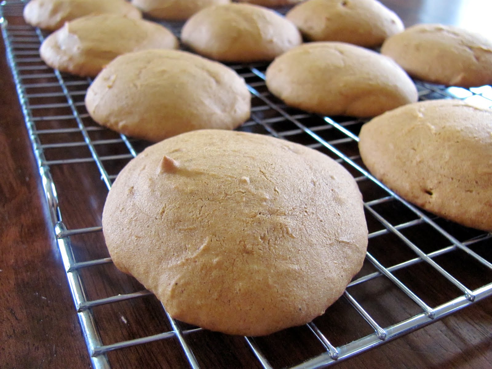 Scoop large dollops of batter onto a Silpat or parchment lined baking sheet, three inches apart. Bake for 15 minutes. Remove from oven and allow to cool completely on a cooling rack before filling with maple cream cheese filling (recipe below).