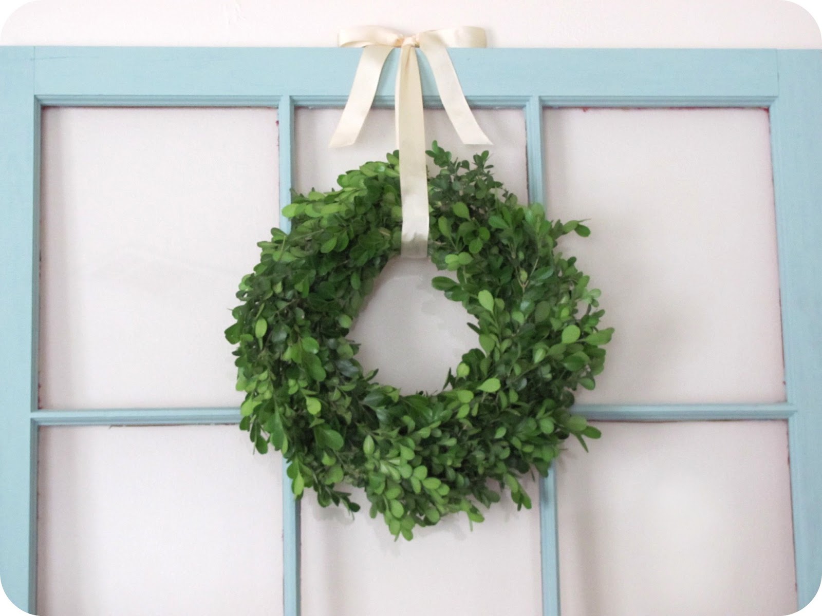 It took quite a while, and quite a lot of boxwood, but I wanted to make sure the wreath was good and full and there wasn't any straw showing through.