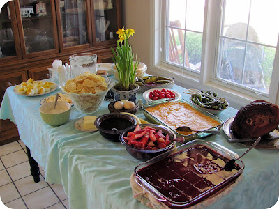 We always have an Easter picnic on Saturday with our Easter baskets and Sunday we go to church in the morning and then have our Easter feast afterwards.