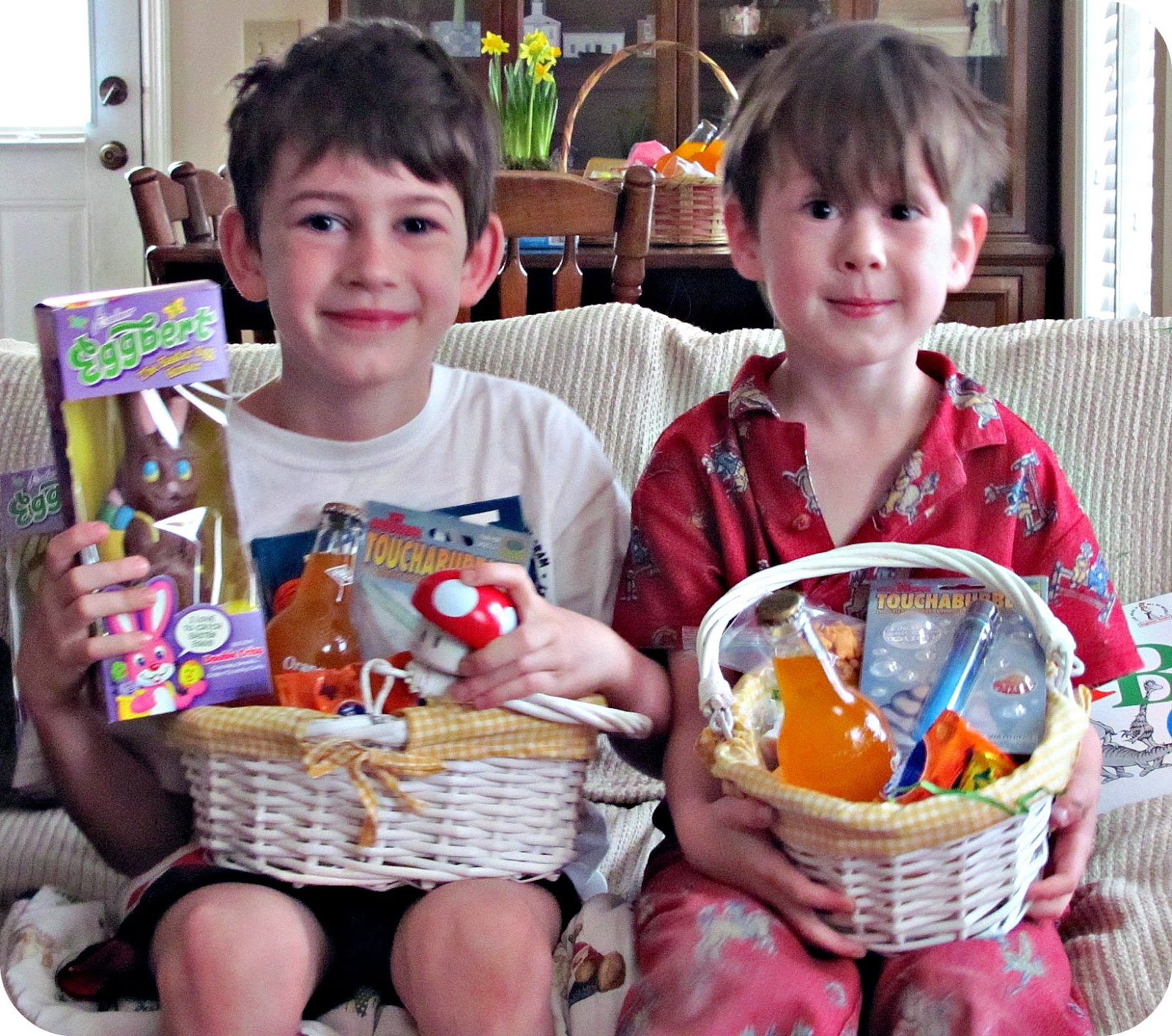 I did take a few minutes to try to learn how to play the jaw hard that Stretch got in his Easter basket and to blow bubbles with Specs and Tank with the bubbles they got in their baskets.