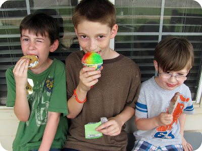 Tank chose an ice cream sandwich, Monkey had a snow cone and Specs was happy with a plain old fudgesicle. Makeema, the maintenance man is apparently a regular of the ice cream truck and has a fondness for ice cream sandwiches too. He is this giant of a man and such a cool guy. It cracked me up when he told me he was there to "embrace his inner child".