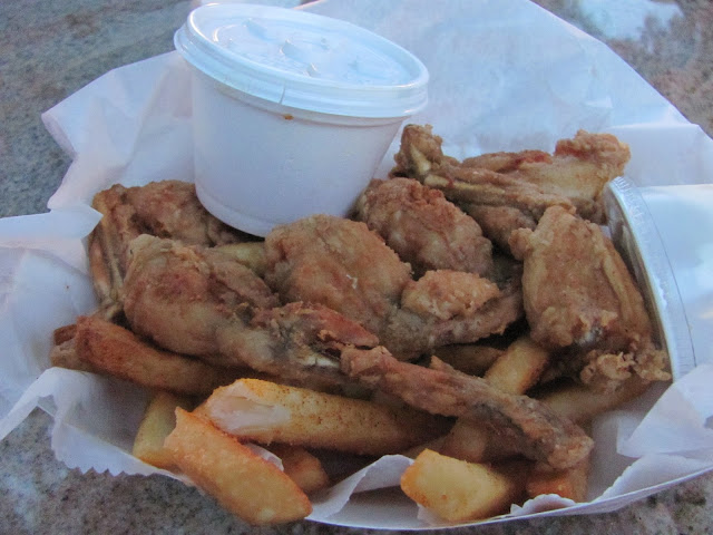 --Frog legs and gator bites. They tasted like chicken. For real.