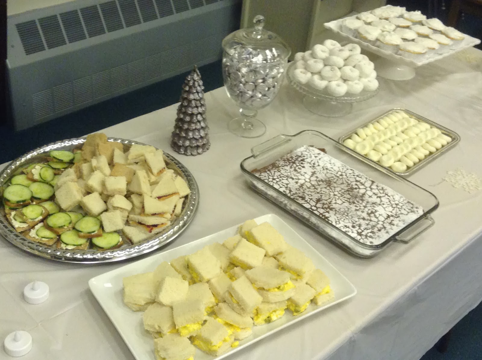 --Finger sandwiches (ham salad, egg salad, tuna salad, cucumber and peanut butter and grape jelly for the picky eaters)