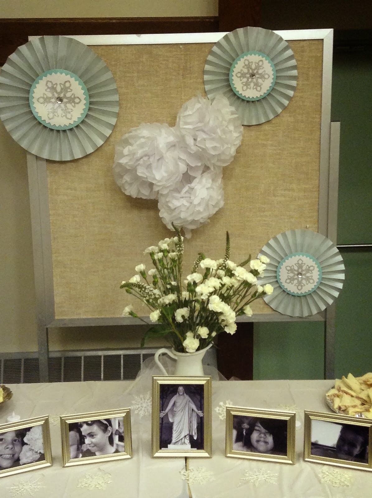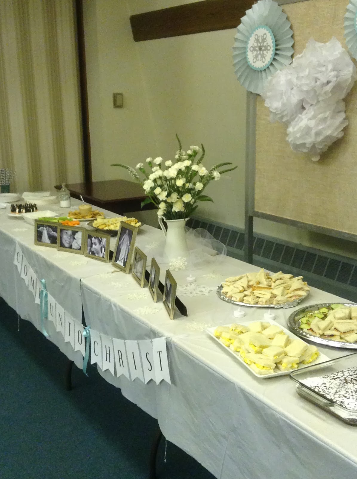We decided to go with a winter theme for the symbolism of white and freshly fallen snow as a new beginning, a fresh start, purity, cleanliness and promise. The young women gave talks during the program, there was a beautiful musical number of "I Know that My Redeemer Lives", some comments from our bishop and then afterwards we had a light lunch.