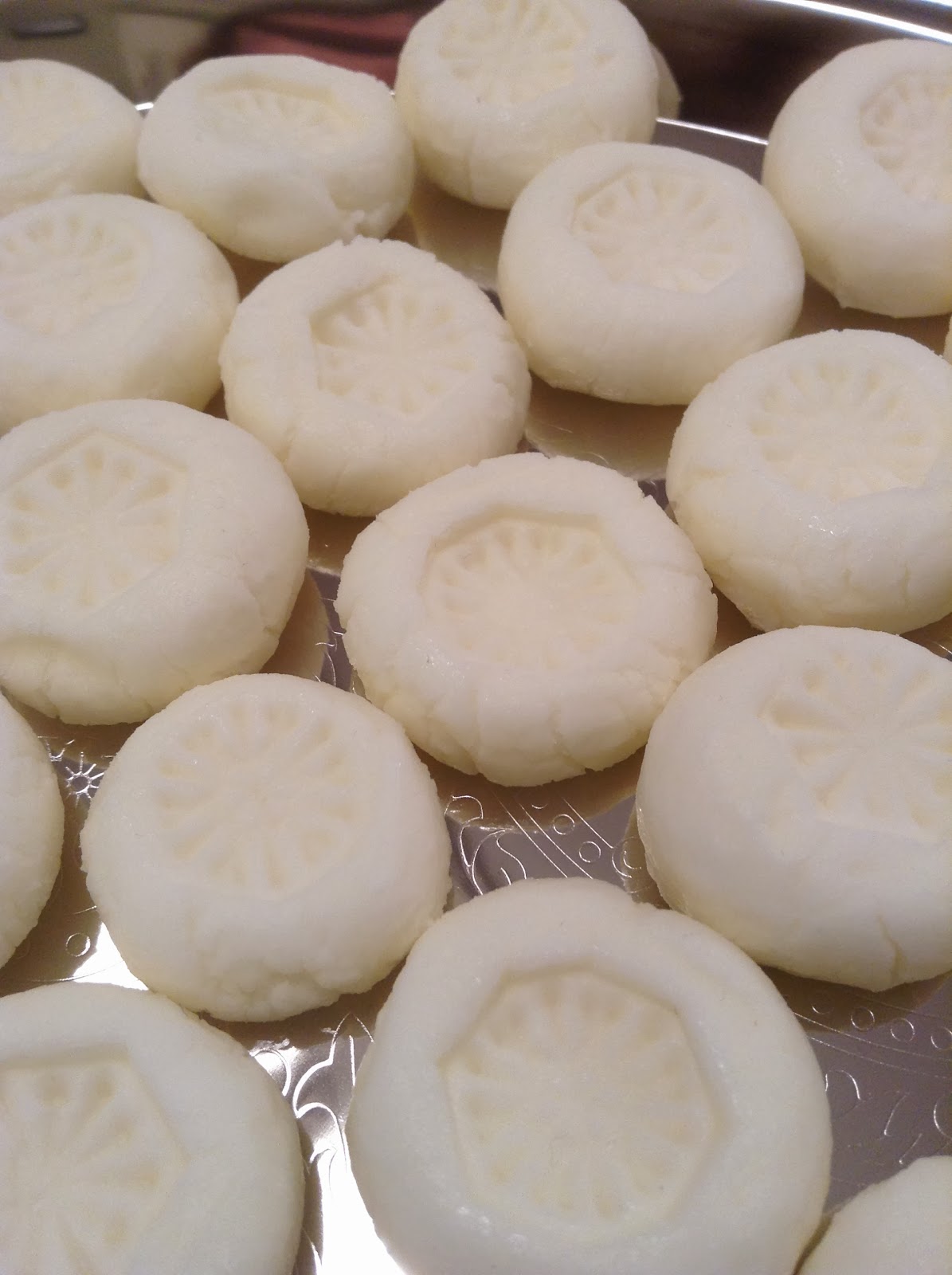 Roll teaspoonsful of the mixture into balls. Roll the balls in superfine sugar, if desired (I skipped this step). Set on waxed paper and allow to dry for about 20 minutes.