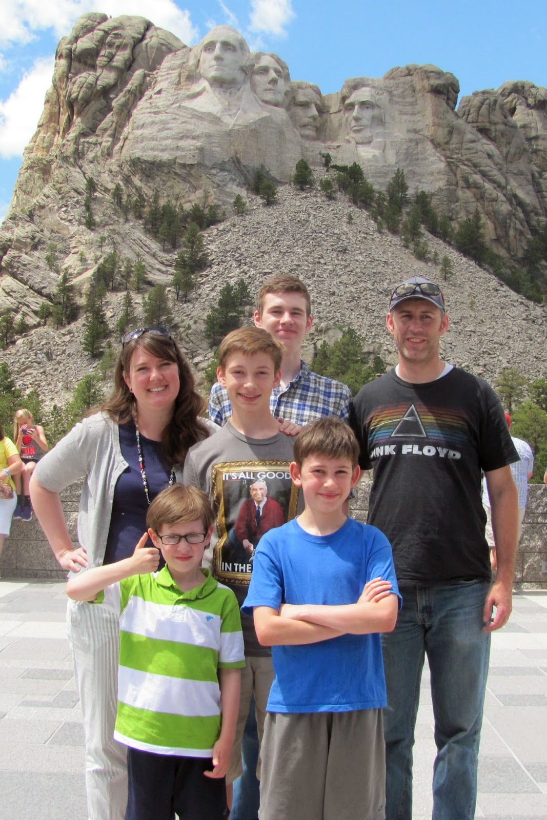 - BE FLEXIBLE: When I asked my kids what made our time in the car the most enjoyable, my seven year old said, "being able to go to the bathroom when we needed to." Amen. Schedules are great, but it worked better for us to go with windows of time instead of precise times. If you see one of those cheesy roadside attractions and you need a break, take a few minutes to stretch your legs while getting a dose of quirky Americana. Being flexible allowed us to meet up with our friends from Alabama at Mount Rushmore when we found out they were also travelling I-90 west from Ohio and were just a couple of hours behind us. We hadn't seen them since we both moved last summer, so that was worth it to us to be a little behind on our plan for the day.
