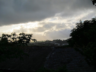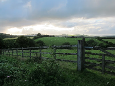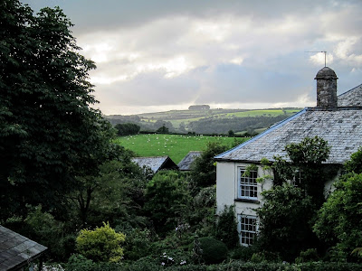 When Anne and I were exploring we found a little secret door in the front garden. We went through and it was a shortcut to the road that wound around from in front of Clare's barn up to the main road. As we walked up the lane we passed several pastures with sheep, said hello to a horse, got startled by some huge pigeons and saw a border collie rounding up the sheep for the evening. One day when we were driving a little stoat popped out of the hedges, bounded to the middle of the road, looked around and dove back from whence he emerged. We also saw some pheasant hens and I think maybe two pheasant cocks in the hedges. It's hard to think of a word that describes Devon better than "charming." One day as we were driving we saw two farmers wearing wellies and flat caps (think this, only older). They couldn't have looked more at home in the English countryside if they tried.