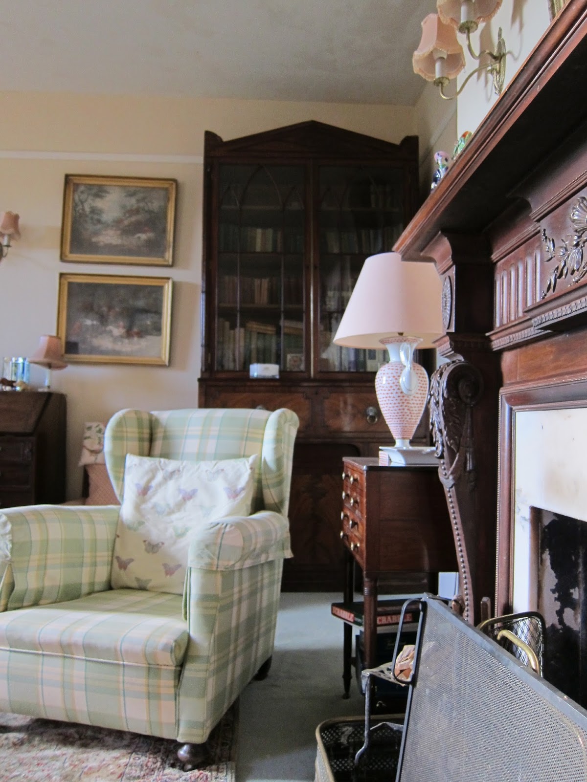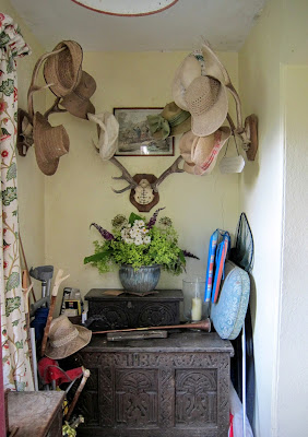 I loved the collection of hats and antler hat racks and the collection of walking sticks she kept in the entry--so very charming and British. I want to start a walking stick collection for my front entry.