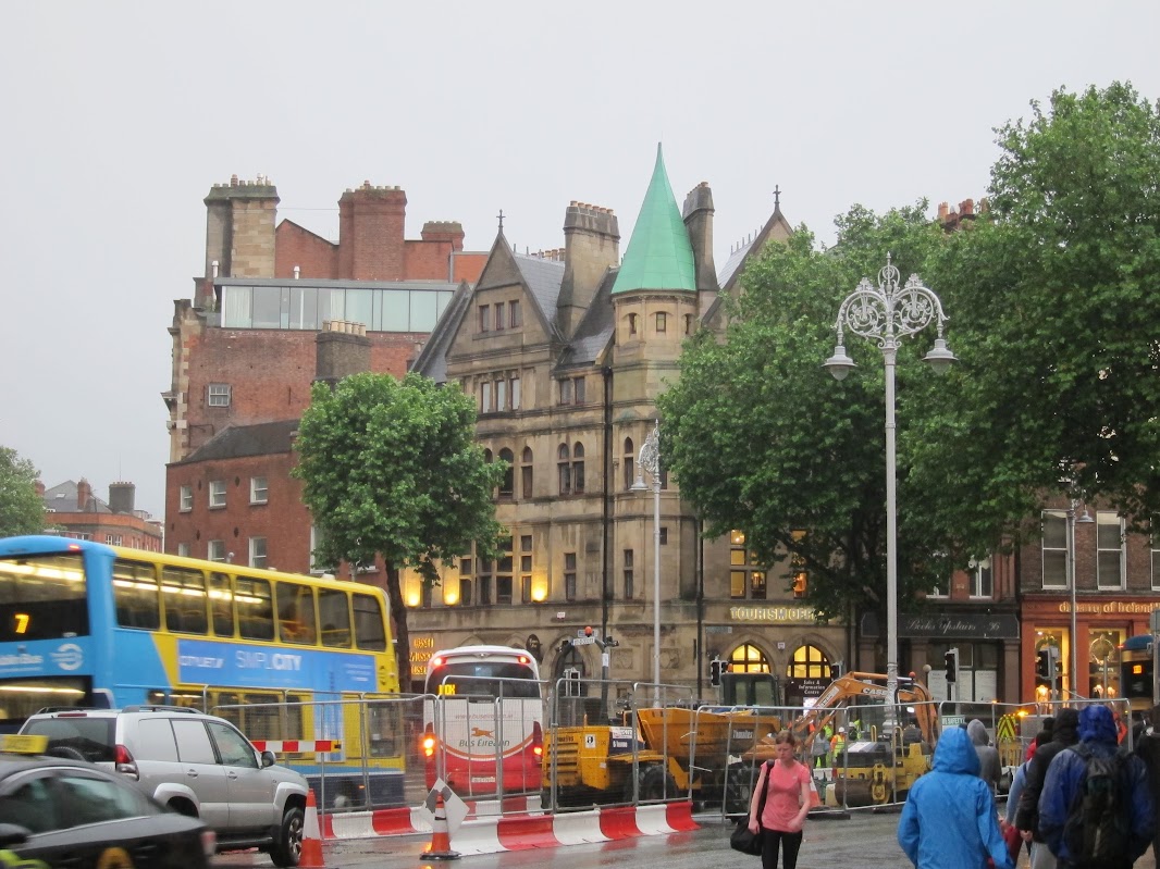 It was early evening and raining when we arrived back in Dublin. We were becoming old pros at taking taxis by this point. Our driver a little standoffish though polite. We learned he was from Kenya and had been in Ireland for several years and that he had a family and that was pretty much all the information he gave us. I got the impression that he had probably been through some hard things in his life and he didn't really want people to know much about him (understandable) so the ride to our hotel for the evening was pretty quiet. I took a couple of photos out the rain blurred taxi windows and we were at our destination in no time.