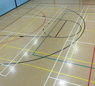 The amount of lines painted on their gym floor was mind boggling. Mom told us about learning the Scottish Sword Dance in physical education when she was at school there.