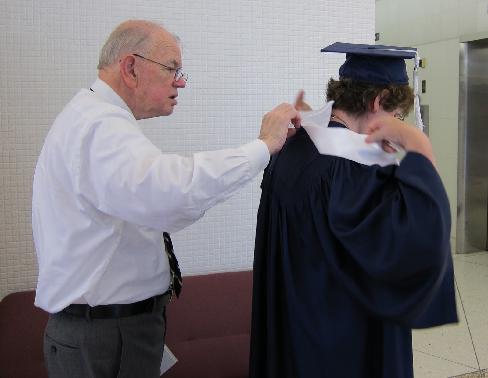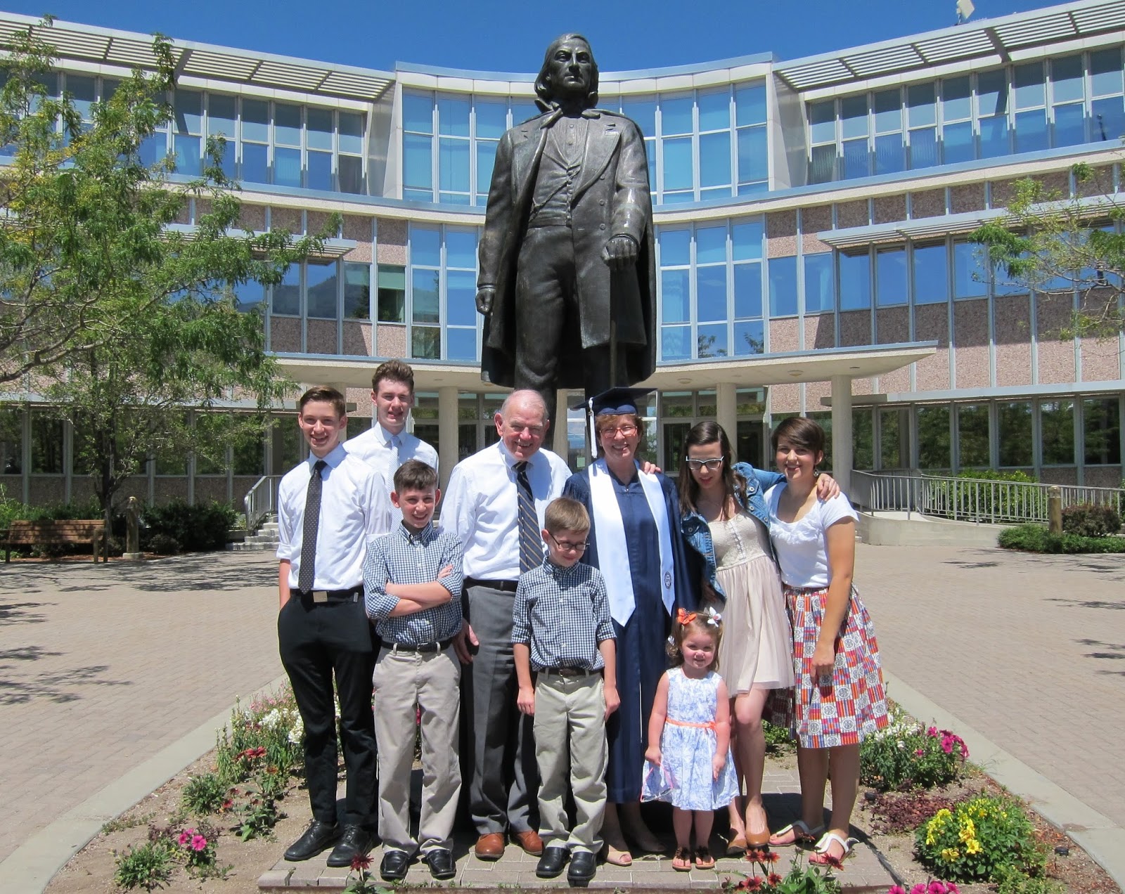Mom was a freshman in 1964 and graduated in 2015 at the age of 70. Several years ago after I was married and already had children of my own, Mom decided she wanted to go back to school and finish her degree since she wasn't able to before she had us kids. She was an exceptional student and a wonderful example to her children and grandchildren of pursuing your dreams, aiming high, persevering and excelling in your chosen field. The paper she wrote for her senior capstone class is even going to be published in a scholarly journal.