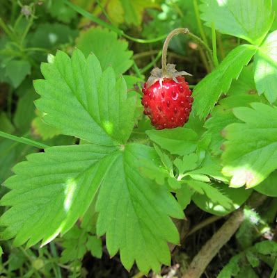 I can't resist wild strawberries. This one was growing on the wall in front of Dove Cottage.