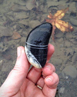 We also played Poohsticks and spent a good 20 minutes skipping rocks. I found this lucky rock. I read somewhere that rocks with rings all the way around are considered magic or wishing rocks, so naturally I had to keep it.