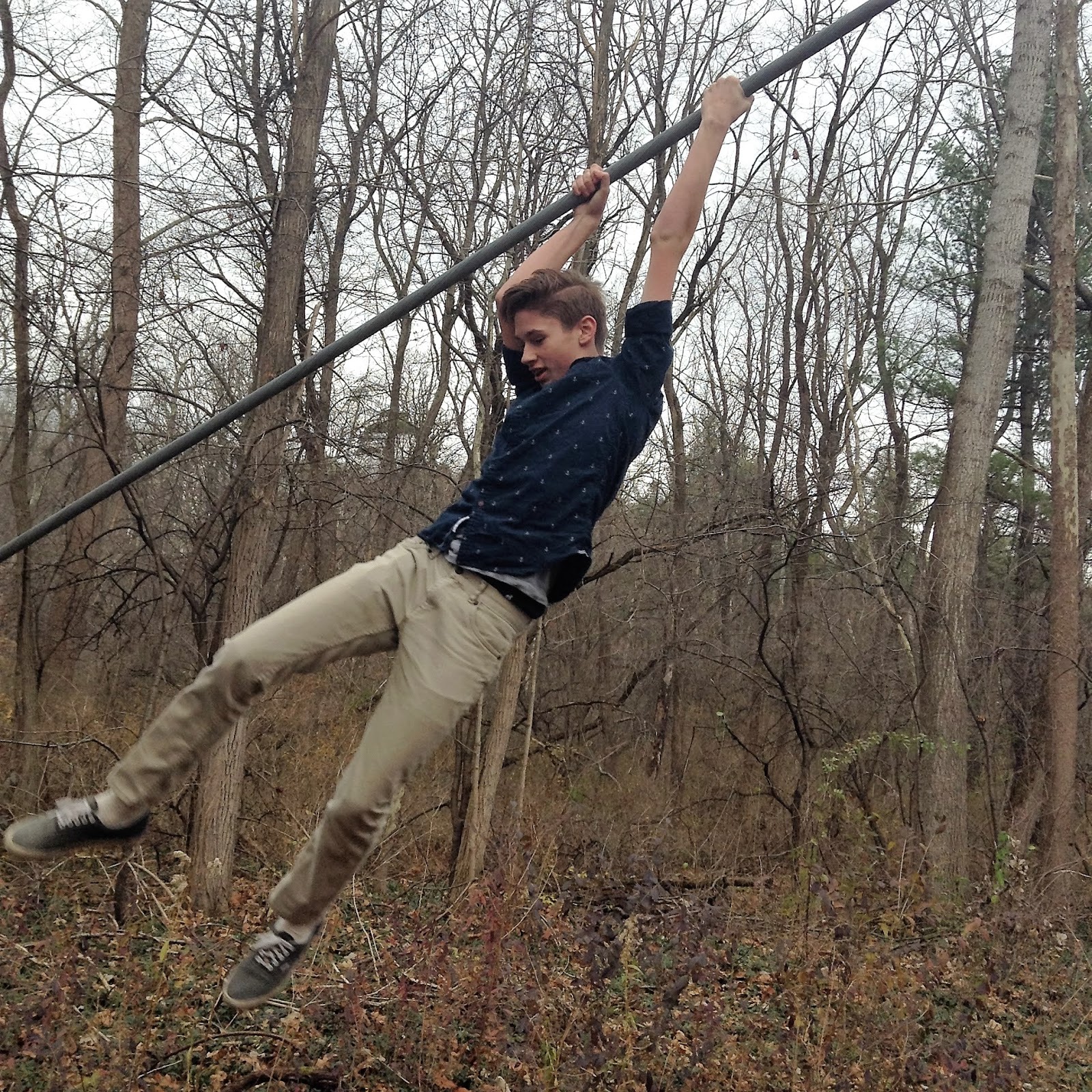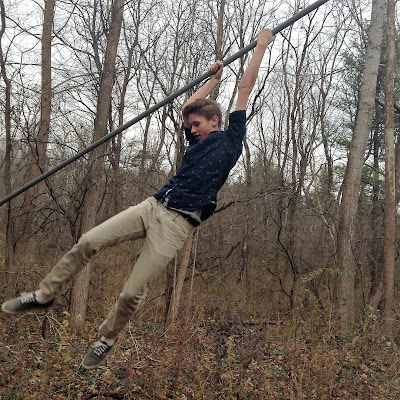 When we arrived we were underwhelmed. The bridge didn't look like too much more than someone's overly-ambitious Eagle Scout project. It was only about ten feet above the river--not what we had expected, but we enjoyed running back and forth across it and making it bounce and sway and shimmying up the cables.