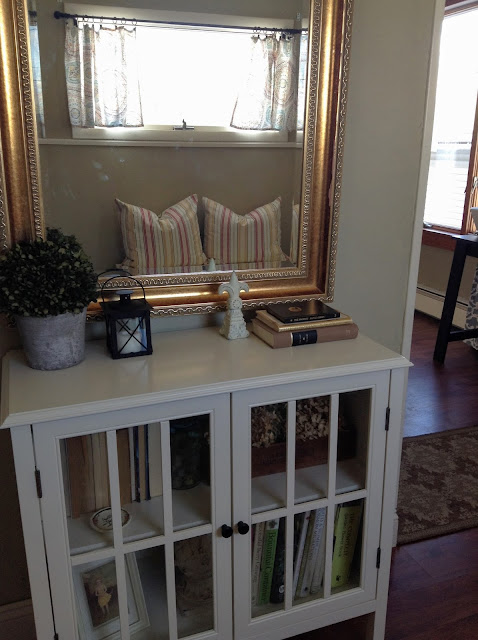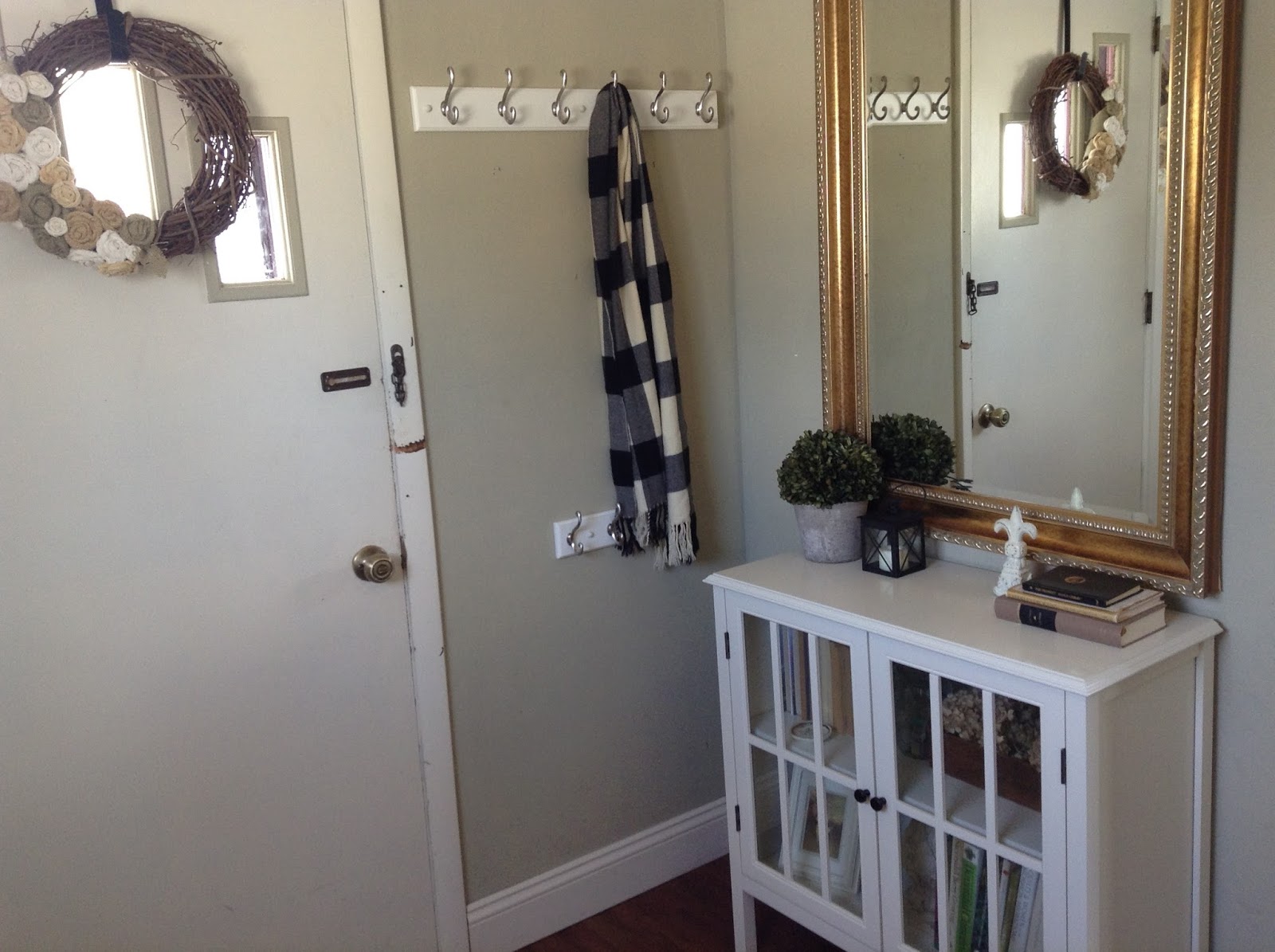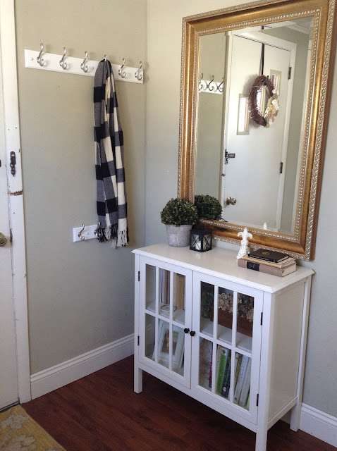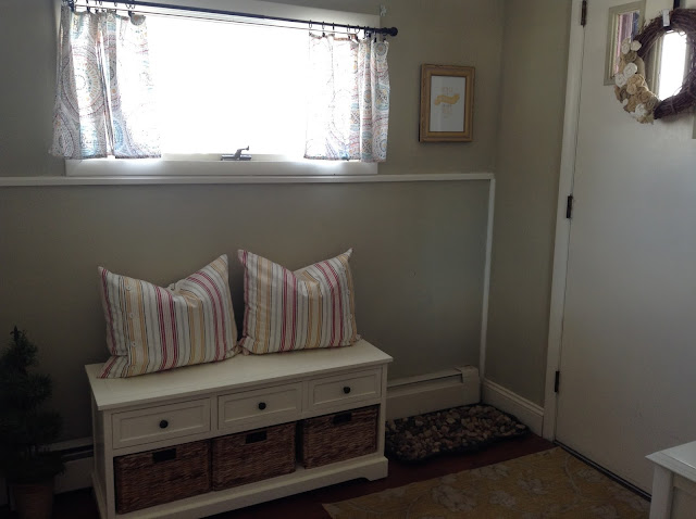 These are the current curtains I have in the entry way. They are actually cloth napkins from Target. I have plans to replace them with a valance of some sort. I'm thinking buffalo check. Are you surprised?