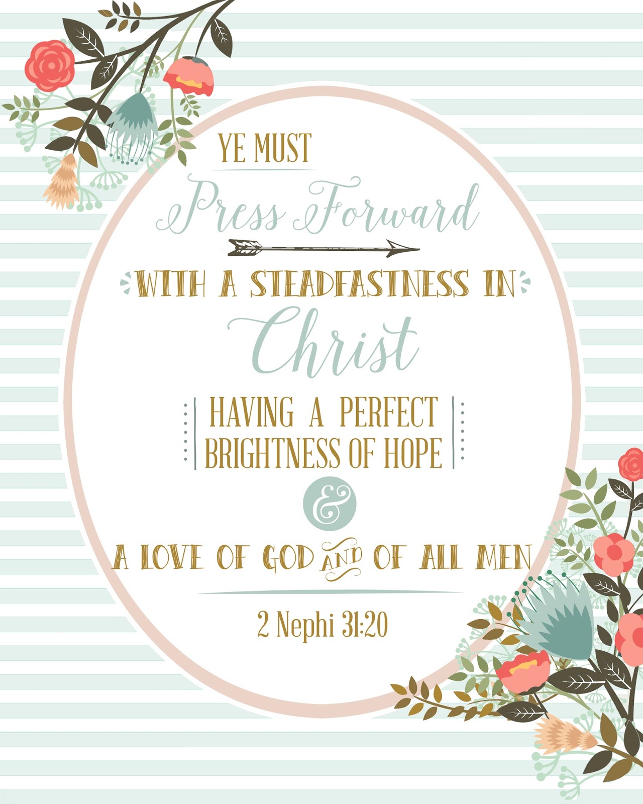 "Ye must press forward with a steadfastness in Christ having a perfect brightness of hope and a love of God and of all men." ~2 Nephi 31:20