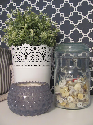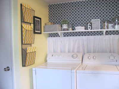 Once again Jill, you have amazed me with your domestic ability to make ordinary places and things look so unique and inviting! Once again, I loved taking this tour of your beautiful laundry-room/bathroom! I loved the idea you had with the shelf up over the washer and dryer. The to go further yet, you added the wall paper and the curtains under it. And you made it all look so homey and comfy too! I thought the idea of a jar of buttons and a jar of clothespins were very fitting and appropriate for this particular room too. And they really do look very nice on the shelf too. I personally LOVE the color of yellow, as it's my favorite color because it is the closest color to beauty of life and light I believe. It warms my heart to see it, so you could just imagine how I felt while gazing at each pic you entered, with some showing the yellow wall. And I agree that tiles on the floor seem more fitting too. It's too bad you are not able to use the shower in the winter, but at least you can on warmer days. I personally do not have any ideas to share with you because you have touched on just about everything that I can think of for this room. And it's amazing how you turned something so ugly (and you said so yourself) into something so awesome. This set of pics of your home Jill, and the previous ones you put online too, seem to belong more in the Better Homes and Garden magazine than they do here, as they are simply beautiful. But then may I add.... where else should a beautiful family live but in a beautiful environment? Thanks so much for sharing all of these. I enjoyed viewing them, and reading your depictions of all!