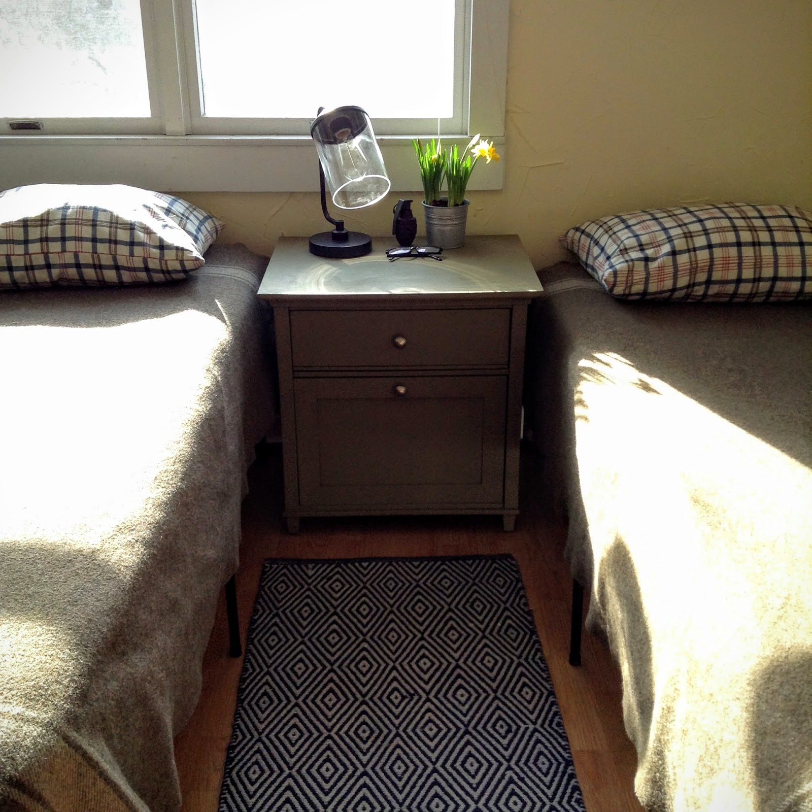 My favorite things about the room are the wool Italian army blankets that I bought from an army surplus place for their beds.
