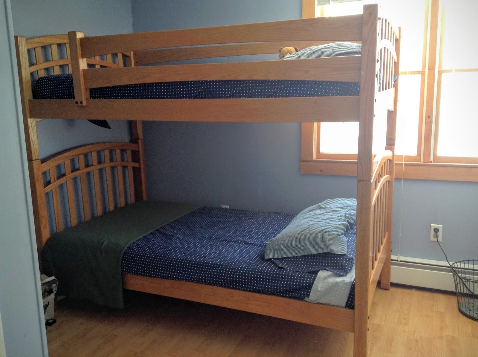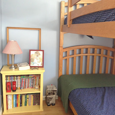 My boys have bunk beds and while they are great for space they are a pain in the neck to make. These beds are made to also work unbunked, but we just don't have the space in this room so this is how they will stay at least until an older brother grows up and moves out of the house (don't get the wrong impression--I'm sad about this, but I know it is coming very soon). My boys also seem to like sleeping with their heads away from the wall for some reason which seems upside down to me, but I'll humor them for now. There is a bedding update happening soon so keep your eyes open in the future for that.
