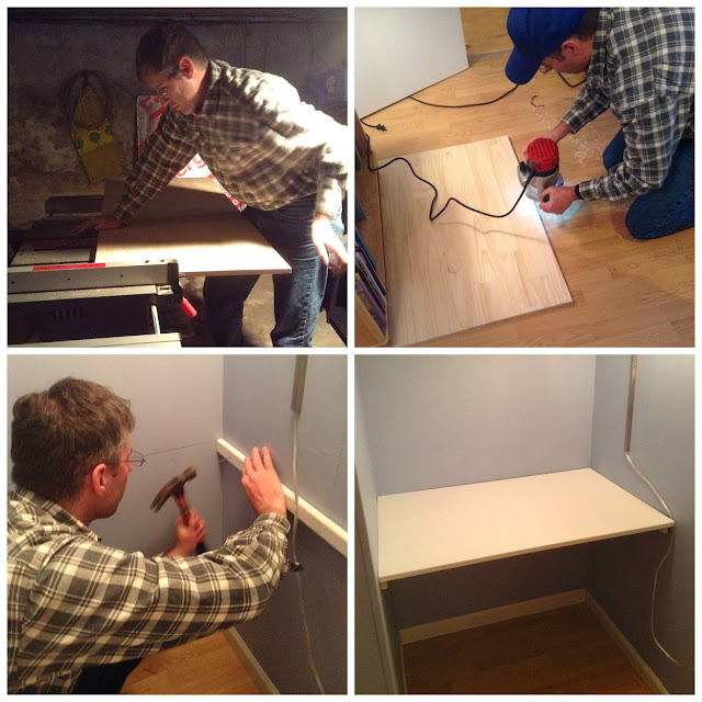 When we moved in there was this odd little corner in the room. I decided it would be perfect for a built in desk so my husband helped me build one.