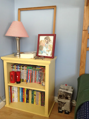 This little bookcase will probably get a paint job sometime soon. I love yellow, but it almost seems too juvenile for what I'm going for in the rest of the room.